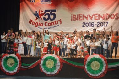 Y como inicio de las festividades con motivo del 55º Aniversario de la Institución, el escenario contempló la participación de 55 voces pertenecientes a alumnos de todas las secciones, quienes con fina estampa mexicana, animaron el momento entonando el “Compromiso Lasallista”…
